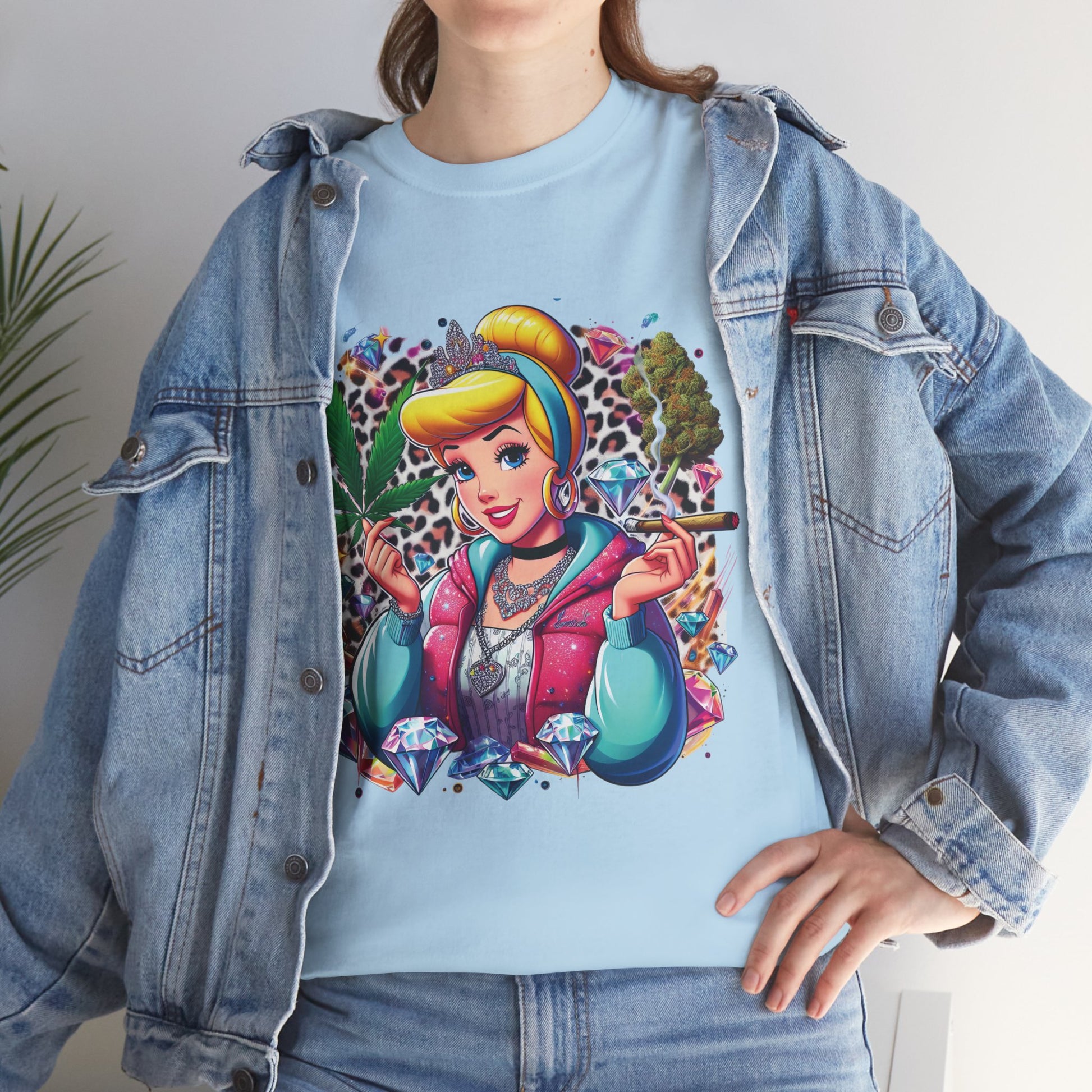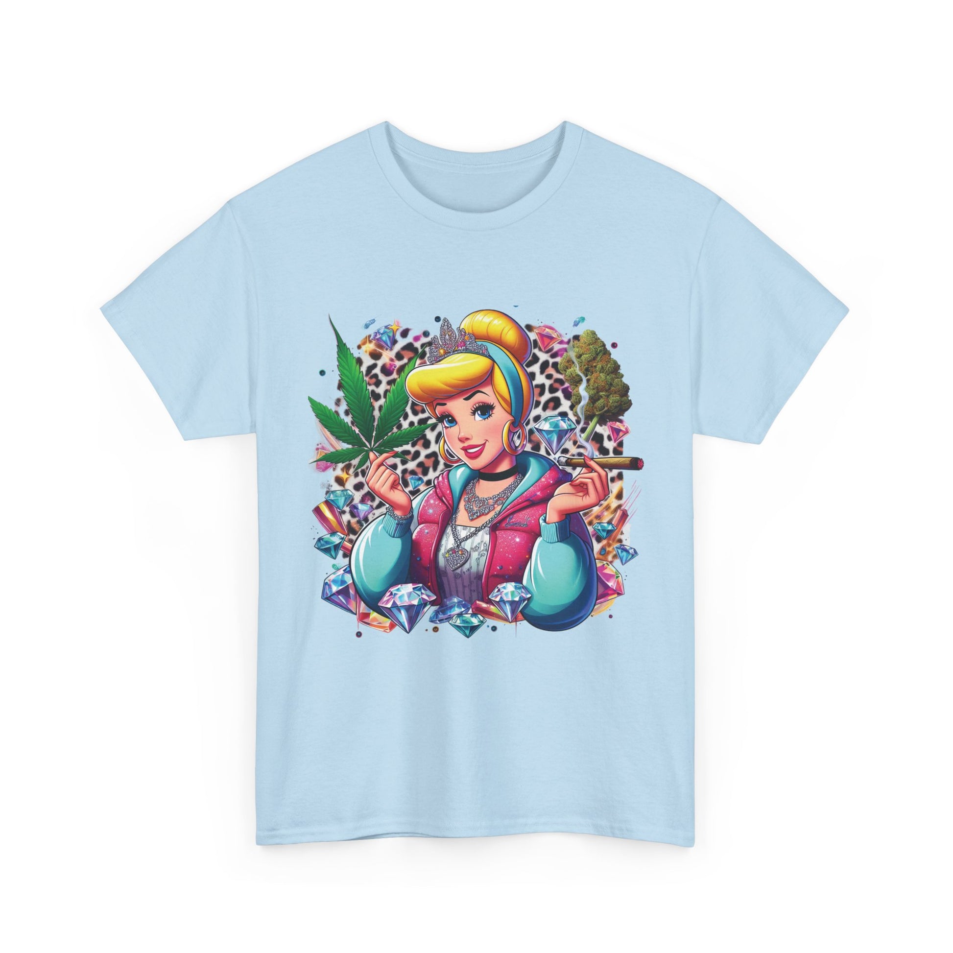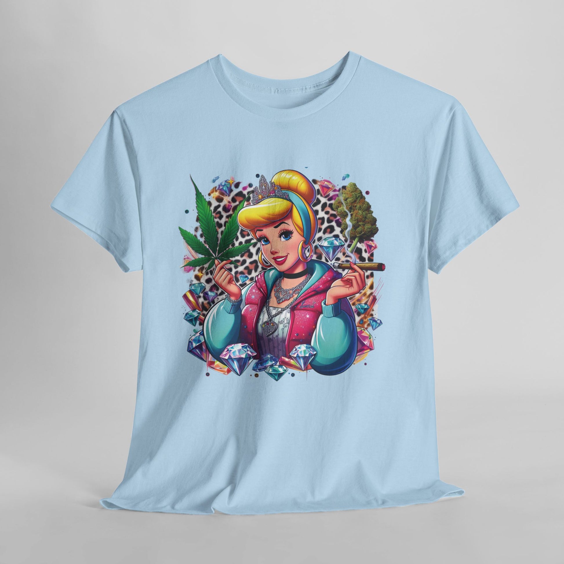 Cinderella Stoner Graphic Tee — Retro Princess Smoking Weed Art Shirt
