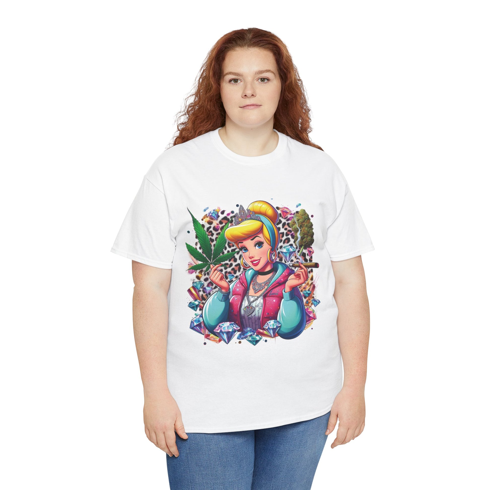 Cinderella Stoner Graphic Tee — Retro Princess Smoking Weed Art Shirt