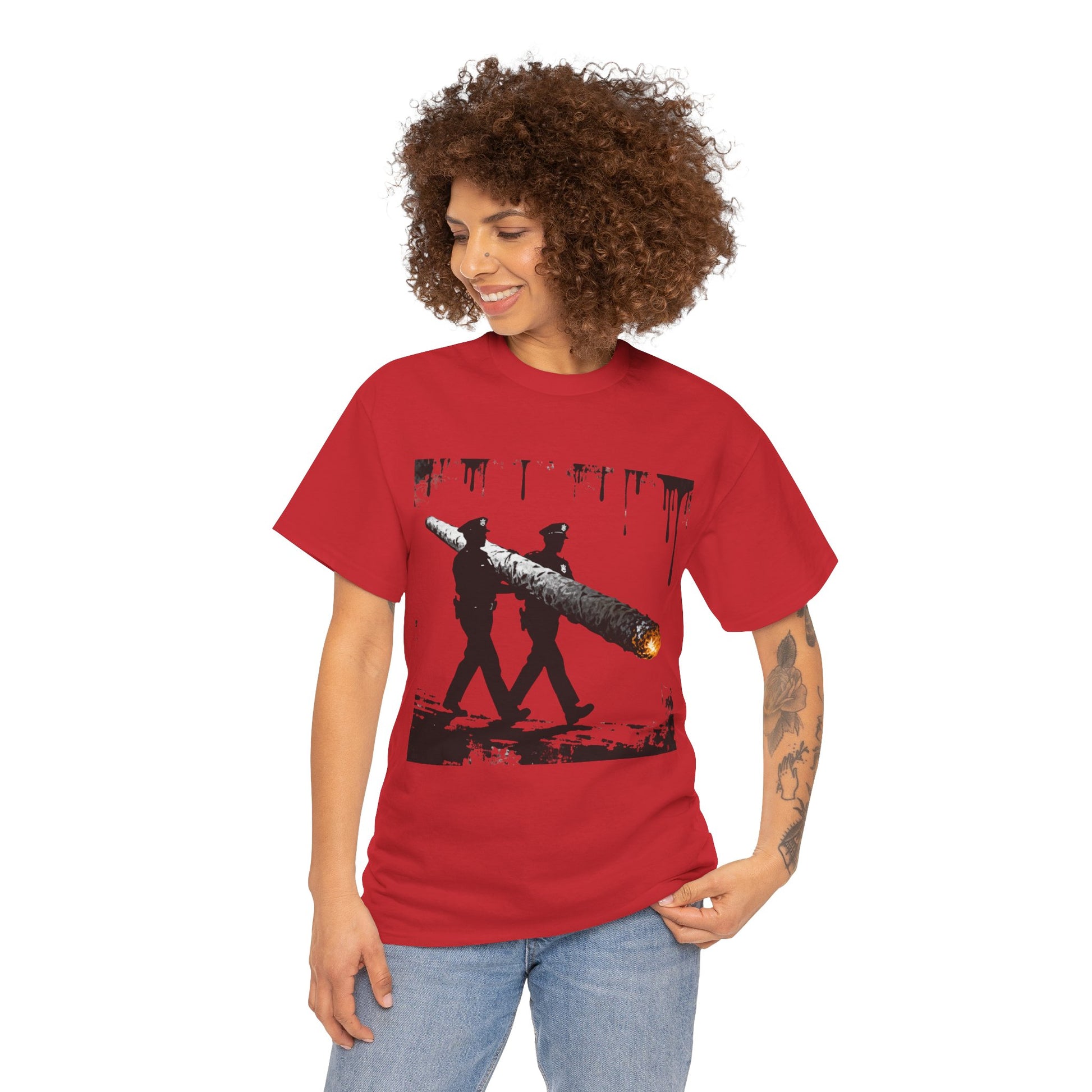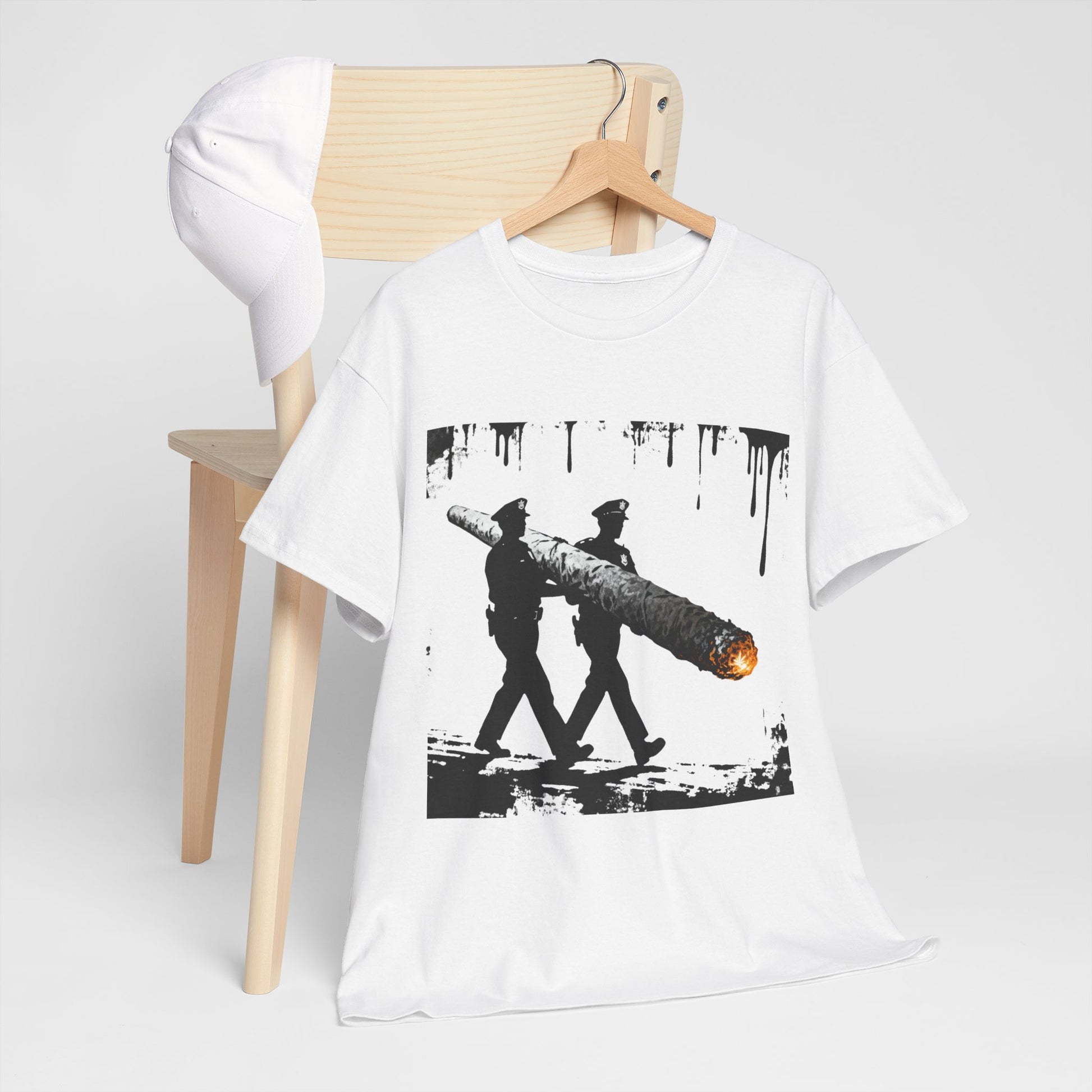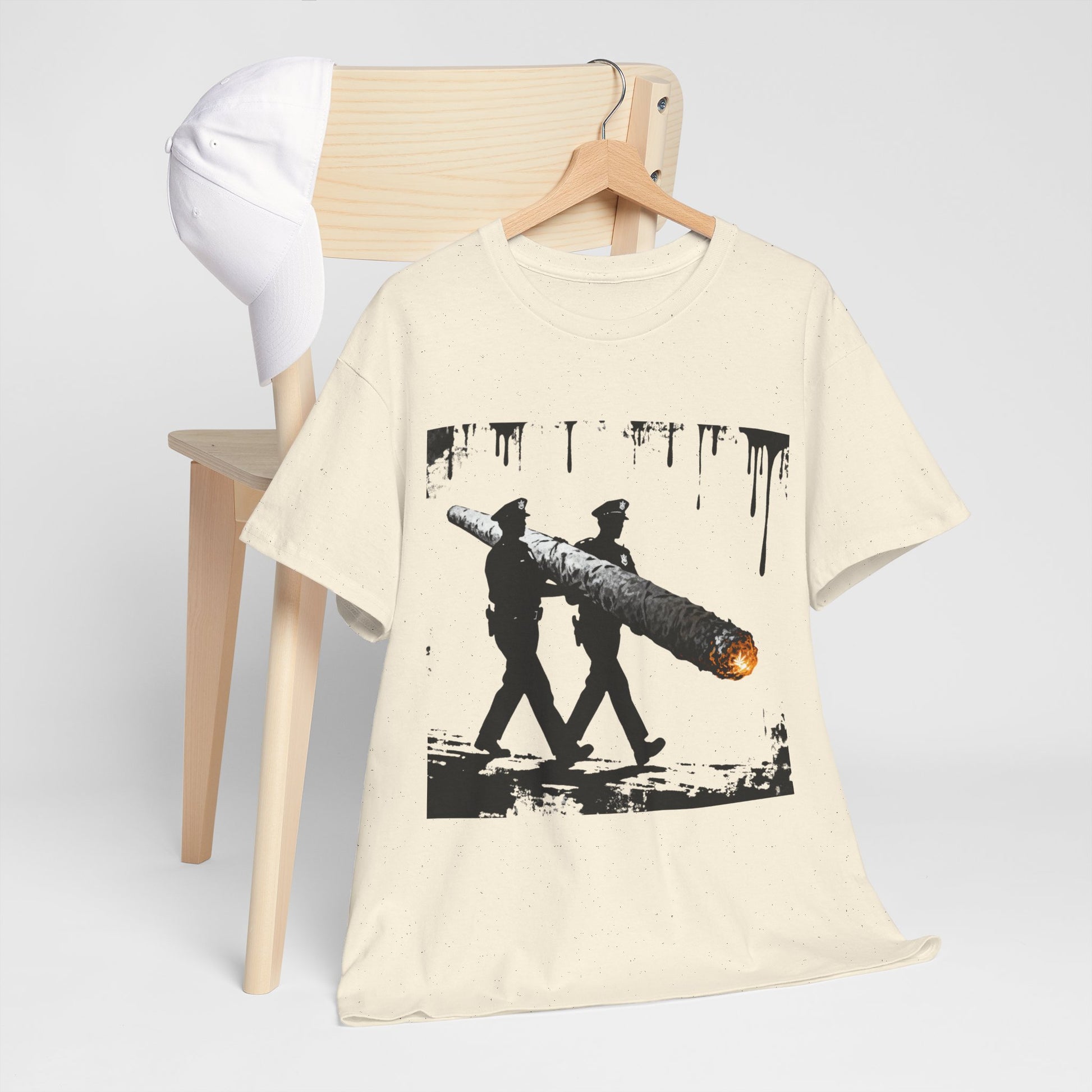 Graphic Tee — Police Carrying a Giant Burning Cigar Street Art Design