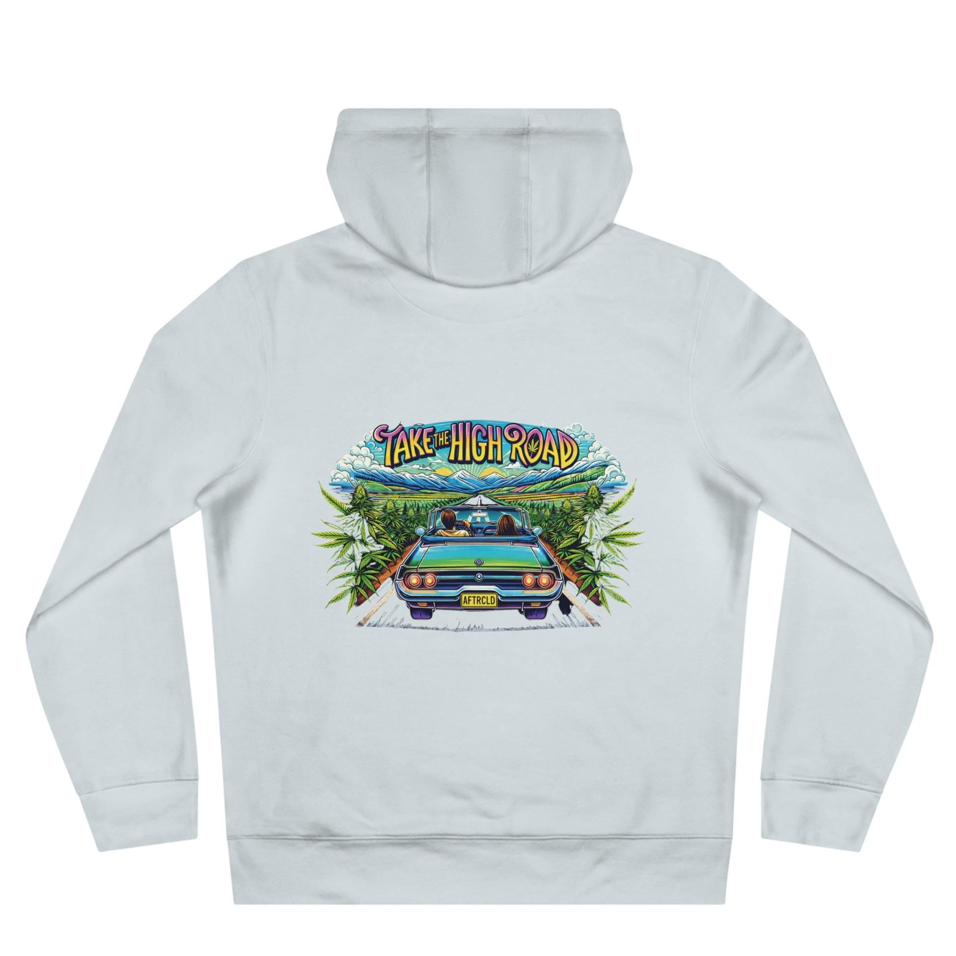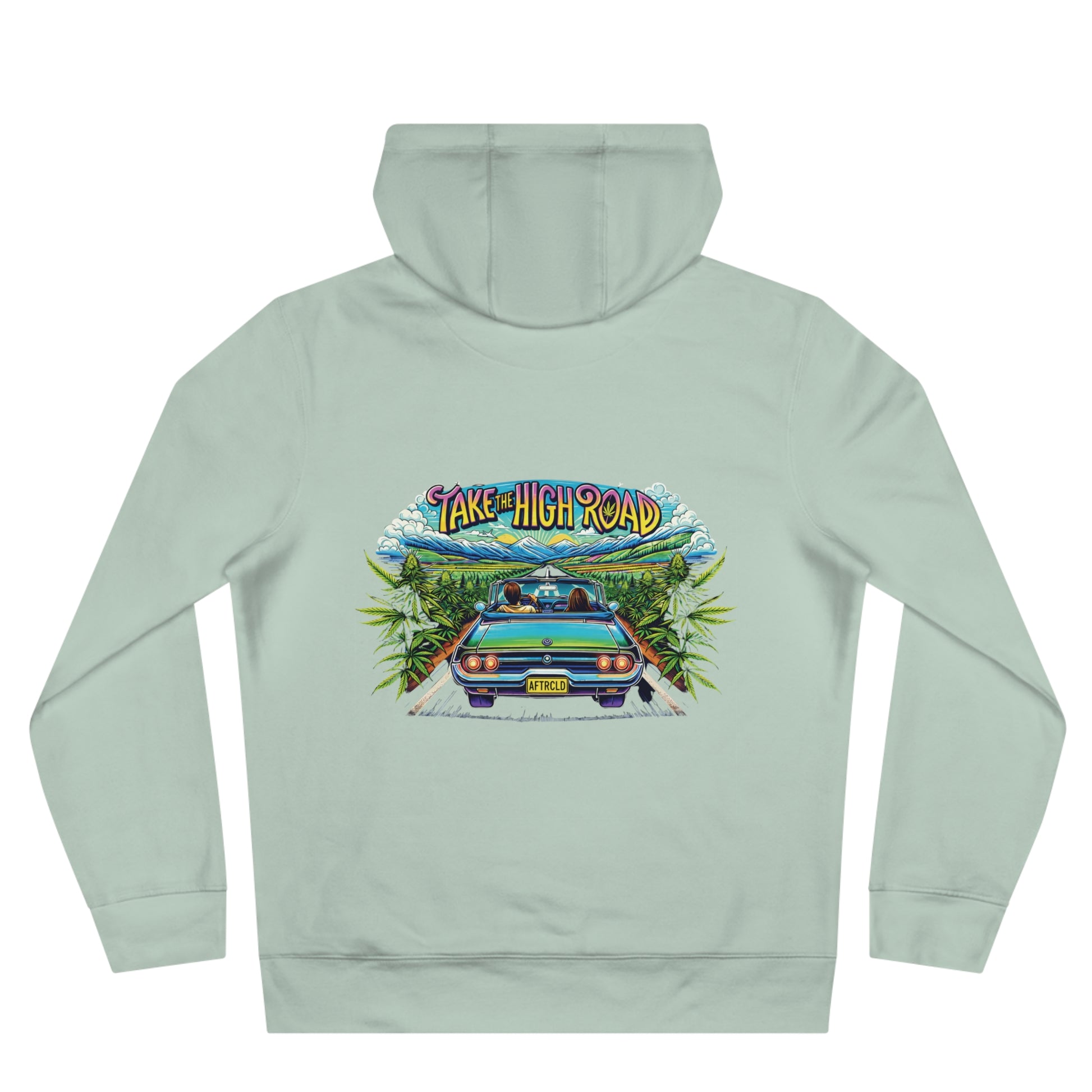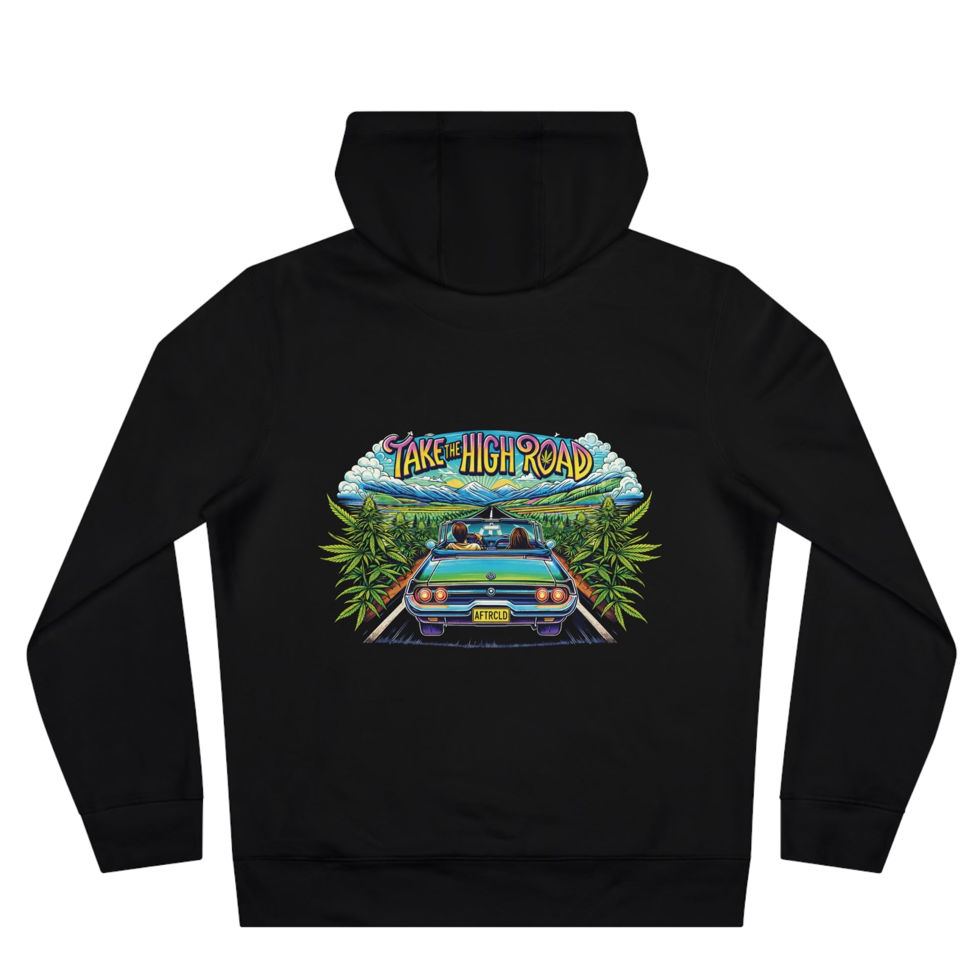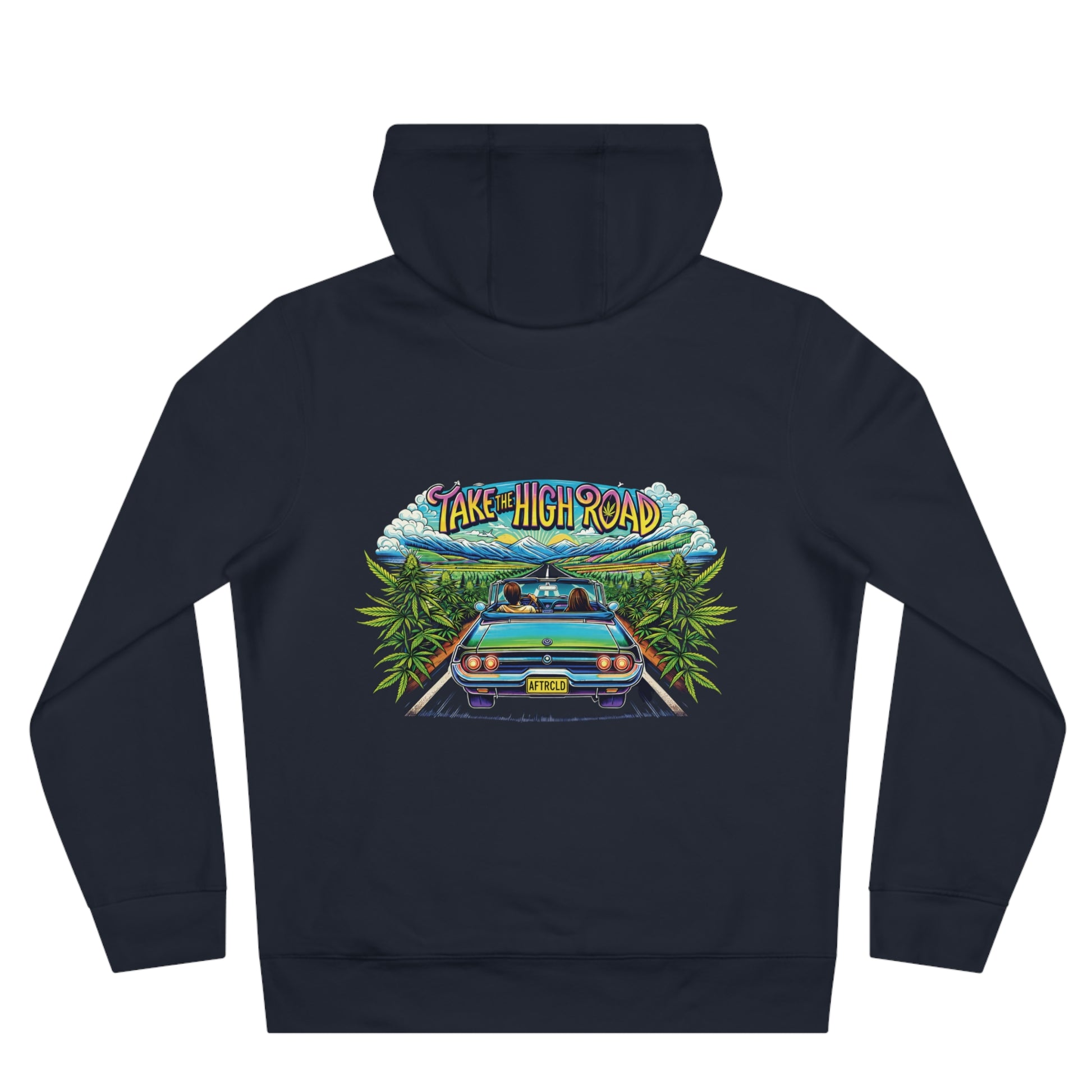 This hooded sweatshirt wraps you in slow-road vibes and leafy calm. The front shows a heart built from lush green leaves — subtle, earthy, and quietly bold. On the back, a retro roadster cruises between overgrown hedgerows under a sky that reads “Take the High Road,” evoking long drives, open shoulders, and easy conversations. The medium-heavy cotton blend feels sturdy yet soft; the roomy kangaroo pocket and adjustable hood keep you warm on chilly mornings or dusk drives. Wear it on weekend escapes, local rallies, or when you want to carry a little nature and nostalgia with you.