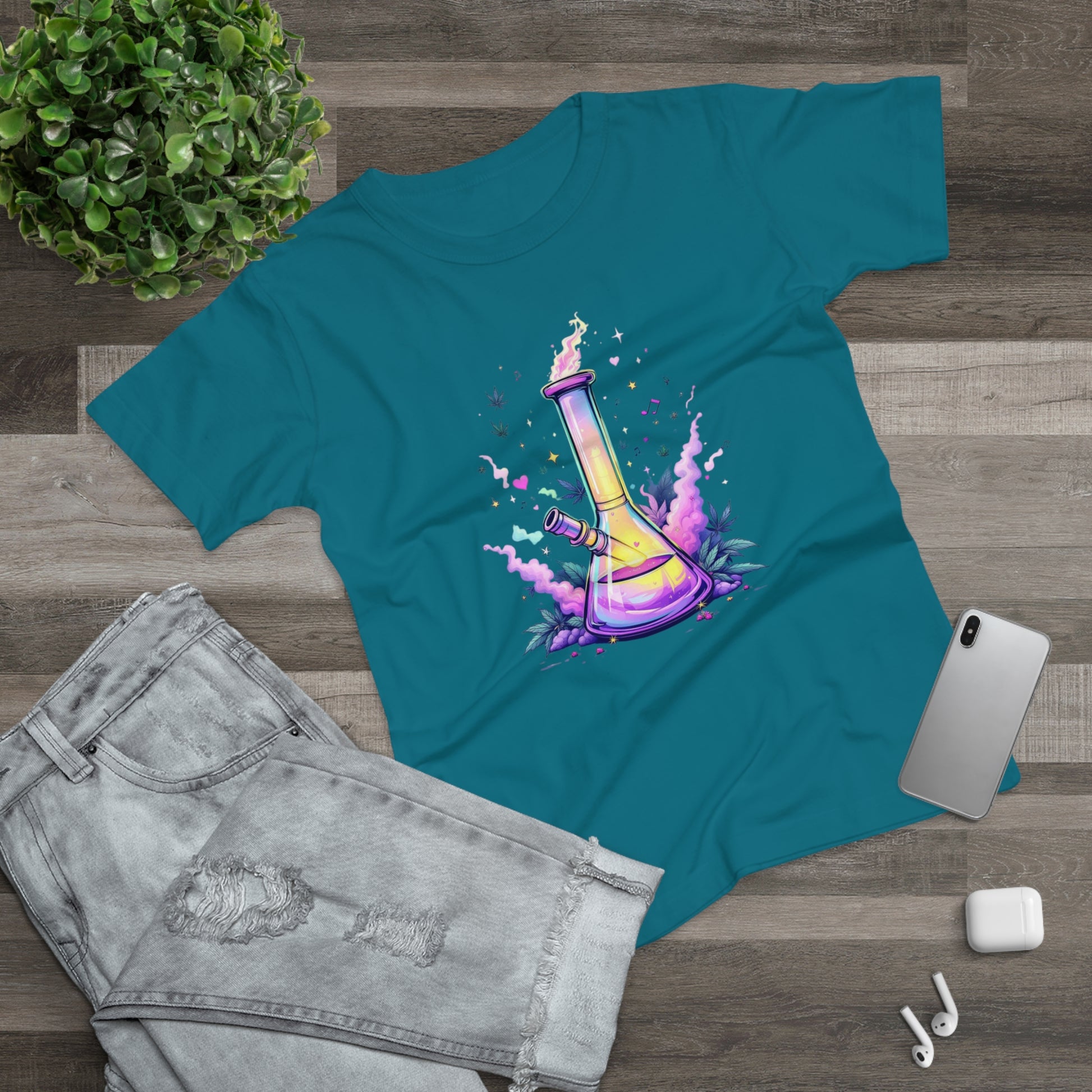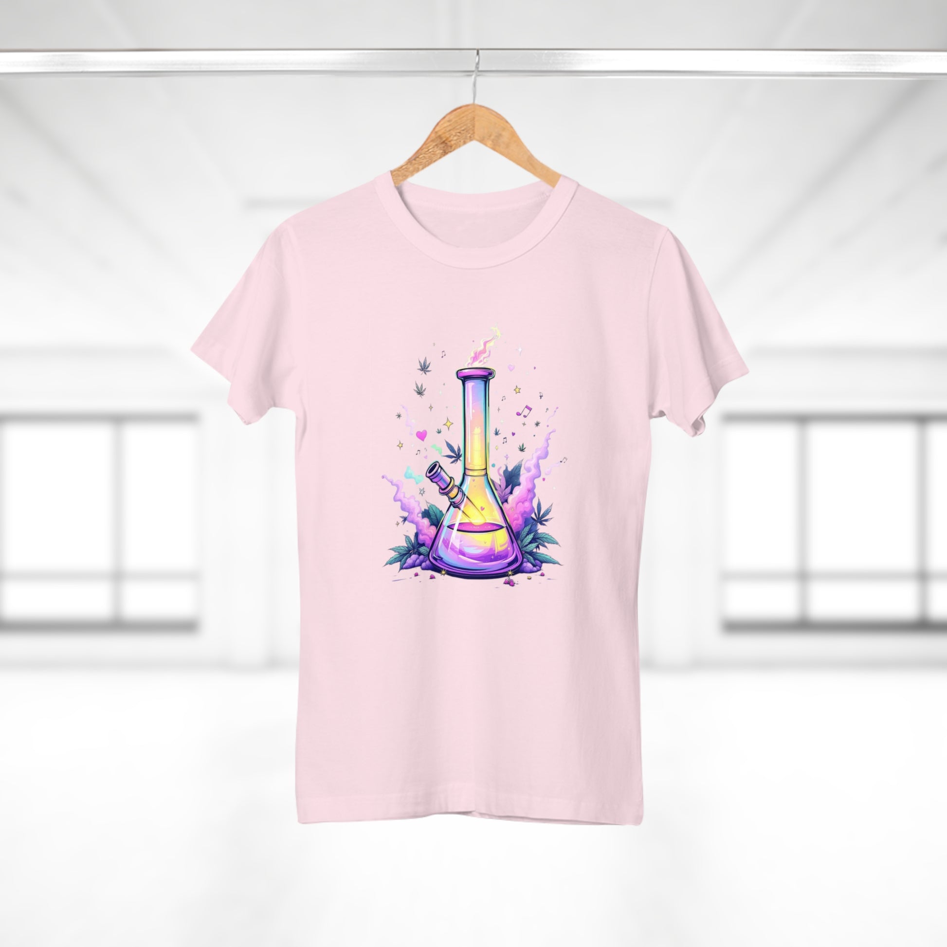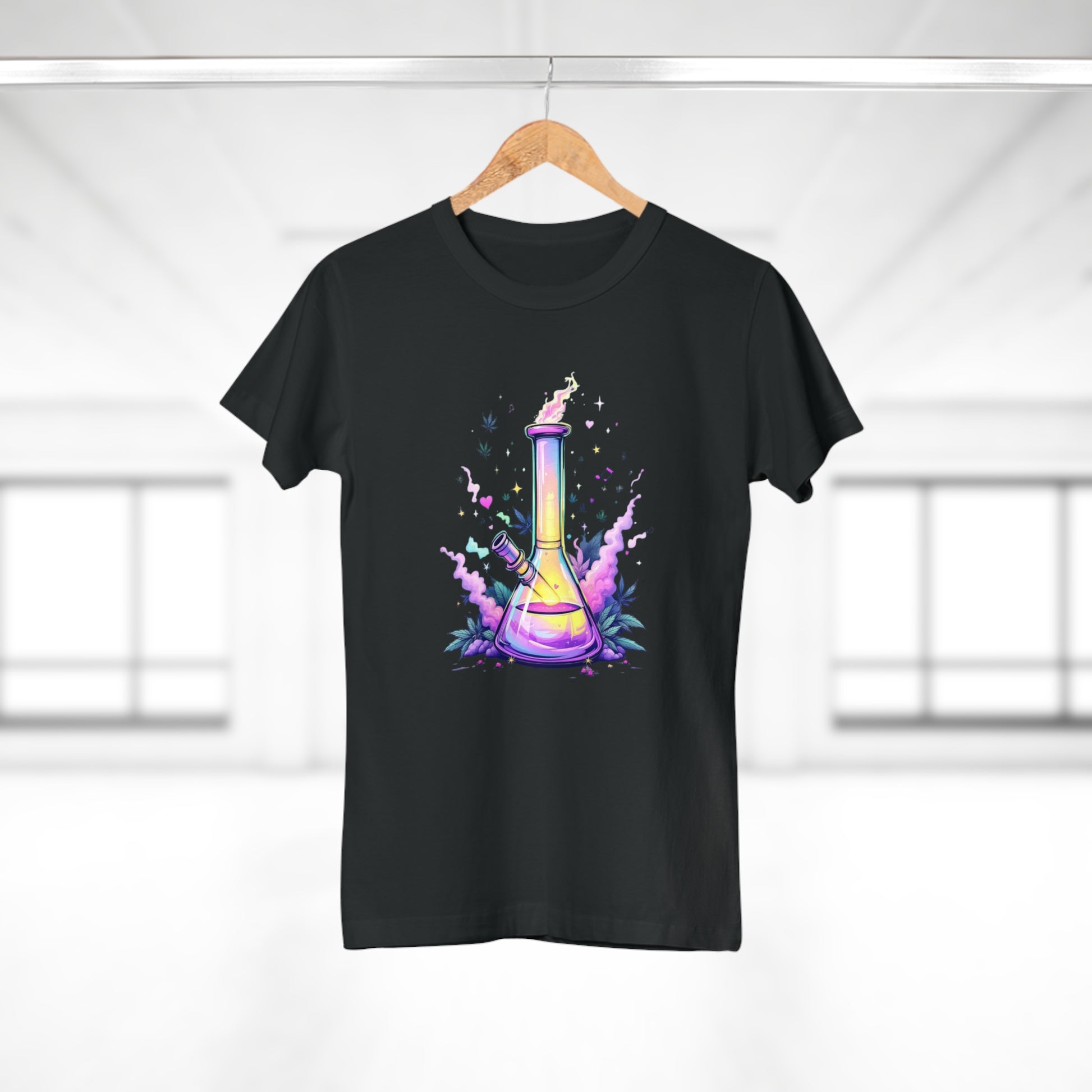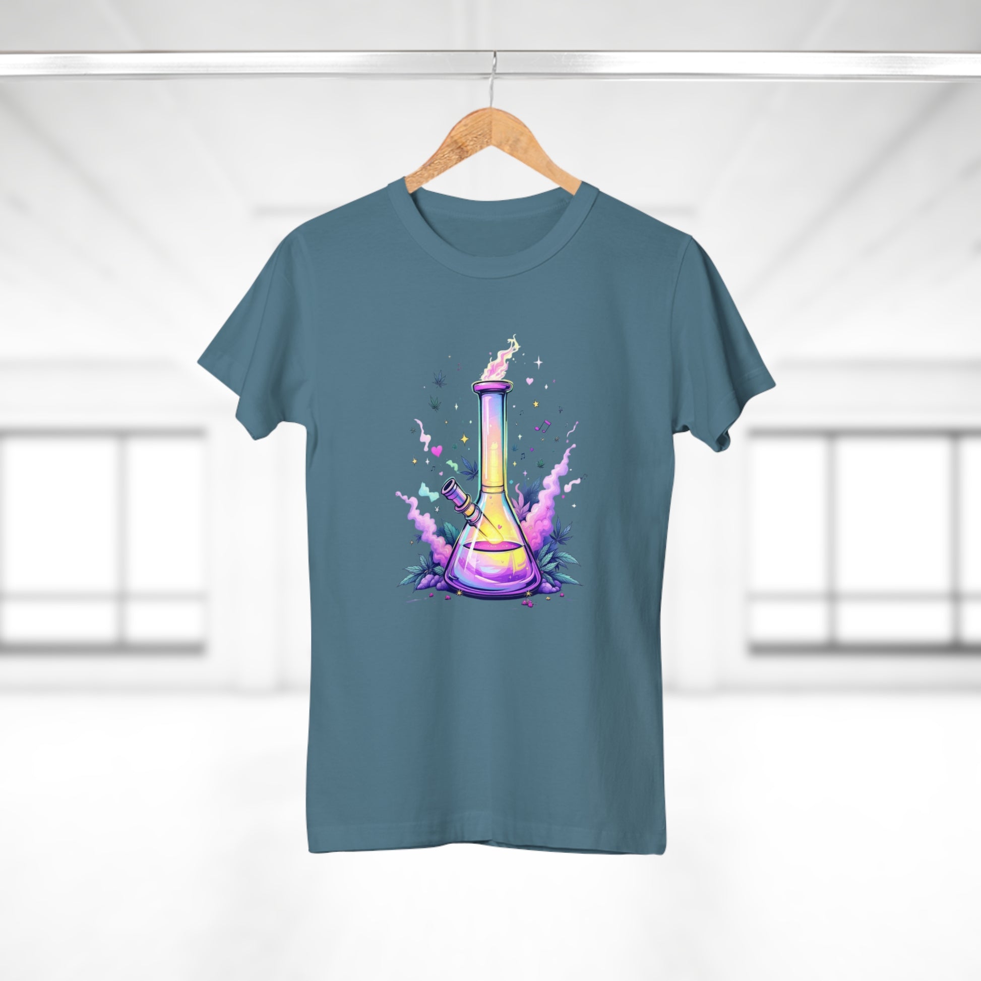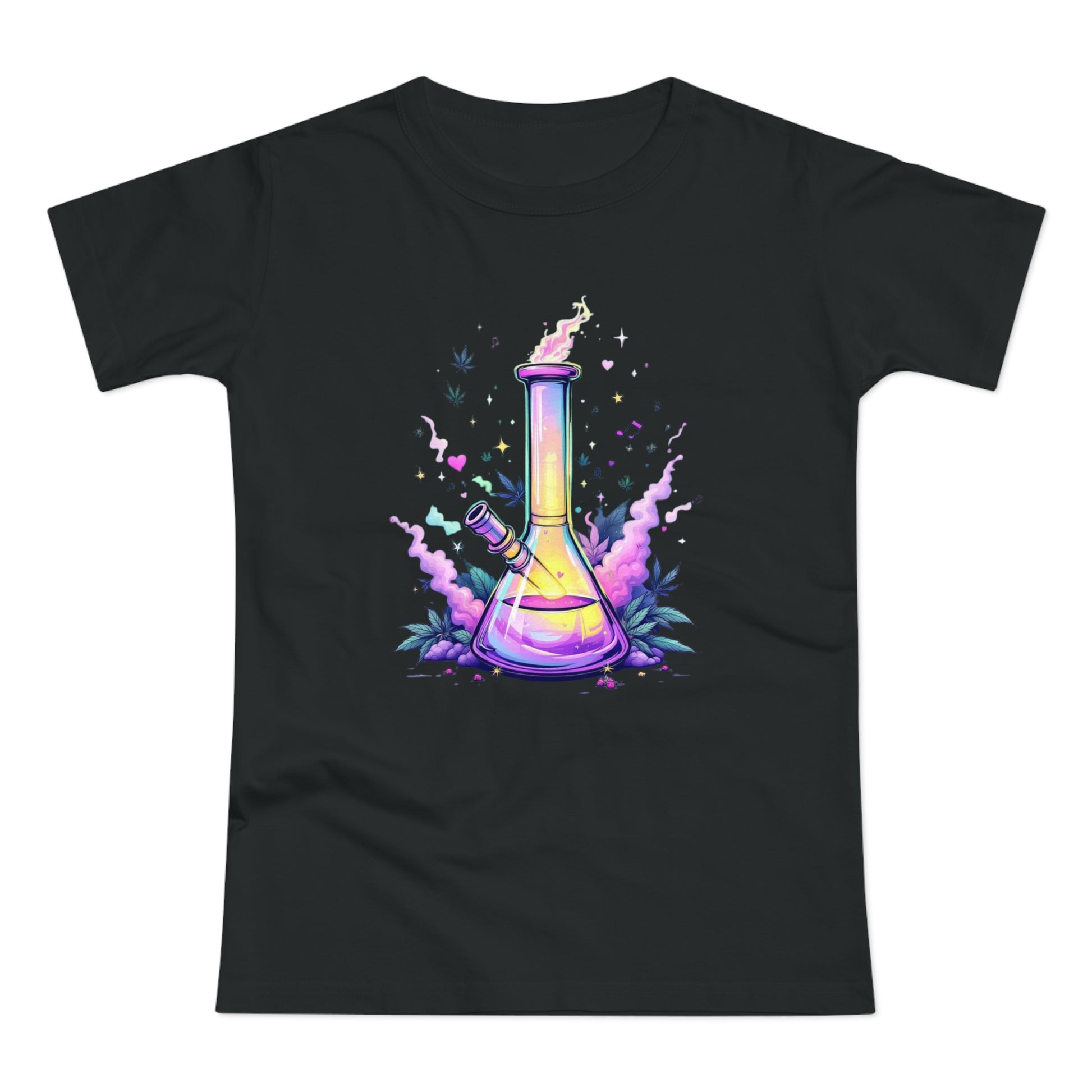 Soft, lightweight tee with a playful, colorful beaker illustration that feels like a tiny burst of lab-magic on your chest. The slim, regular cut and ribbed knit collar sit comfortably for everyday wear. The whimsical chemistry artwork — swirling pastels, gentle smoke, and subtle sparkles — brings a youthful, curious energy to casual outfits. Wear it while sketching, studying, or wandering city streets; it reads like a quiet nod to makers, students, and anyone who loves science with a sense of wonder. The breathable fabric and true-to-size fit keep the focus on the art and the easy, relaxed vibe it creates.