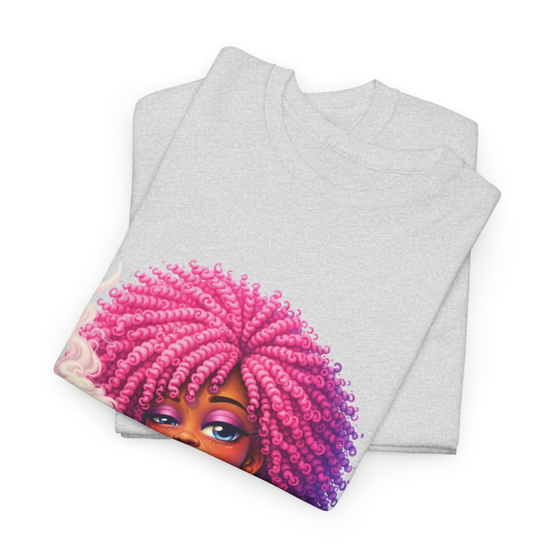Pink Afro Girl Graphic Tee — Colorful Sassy Retro Portrait T‑Shirt