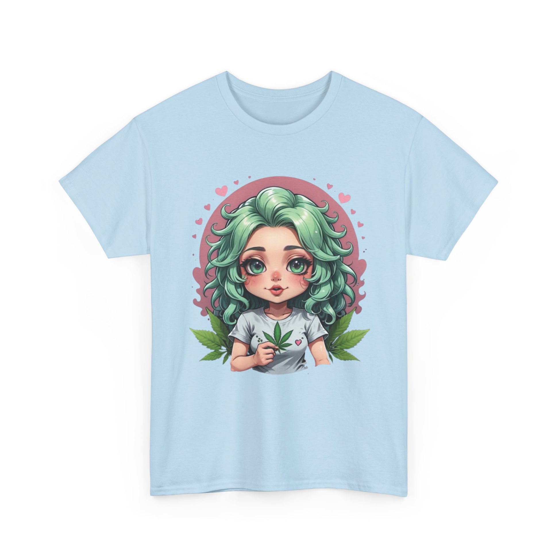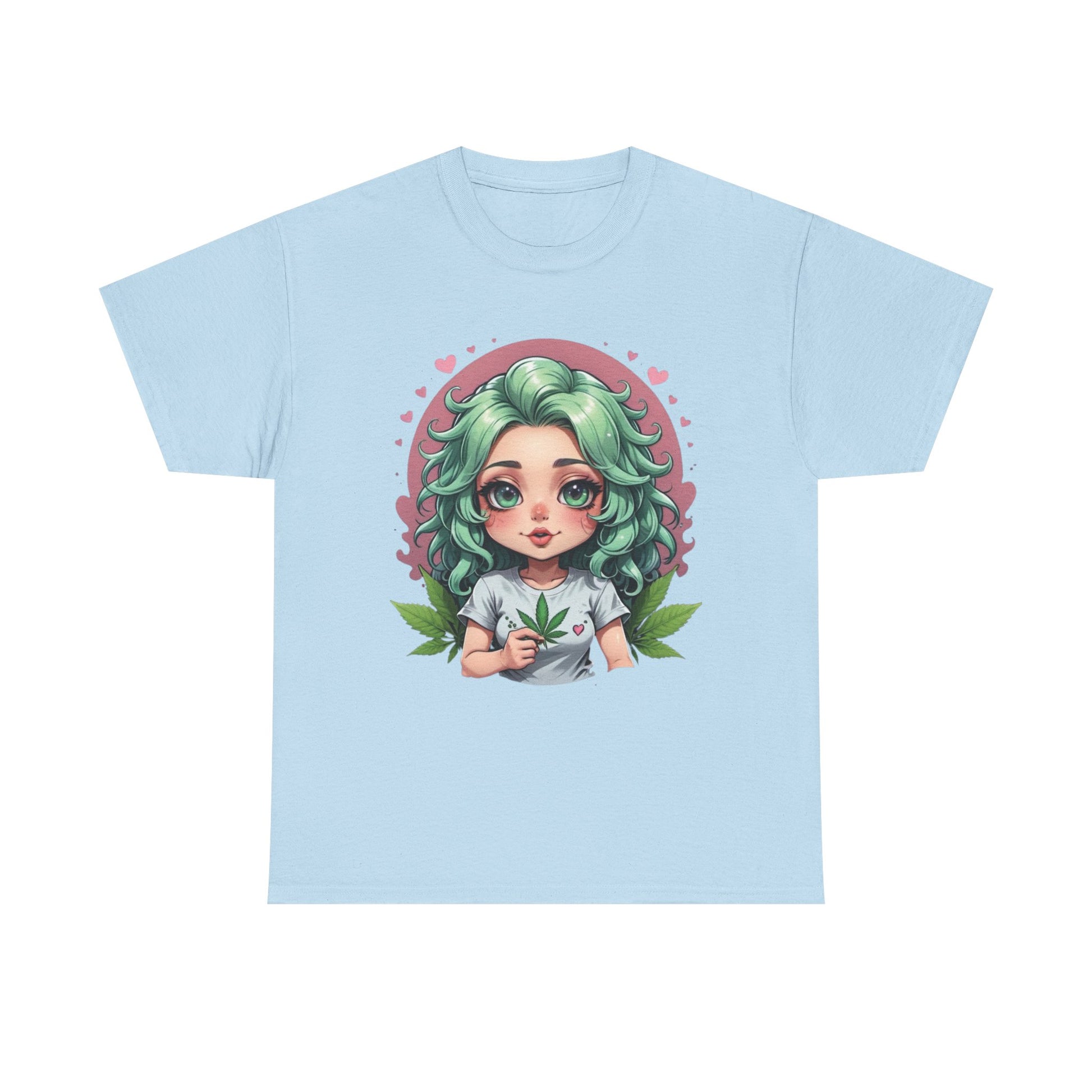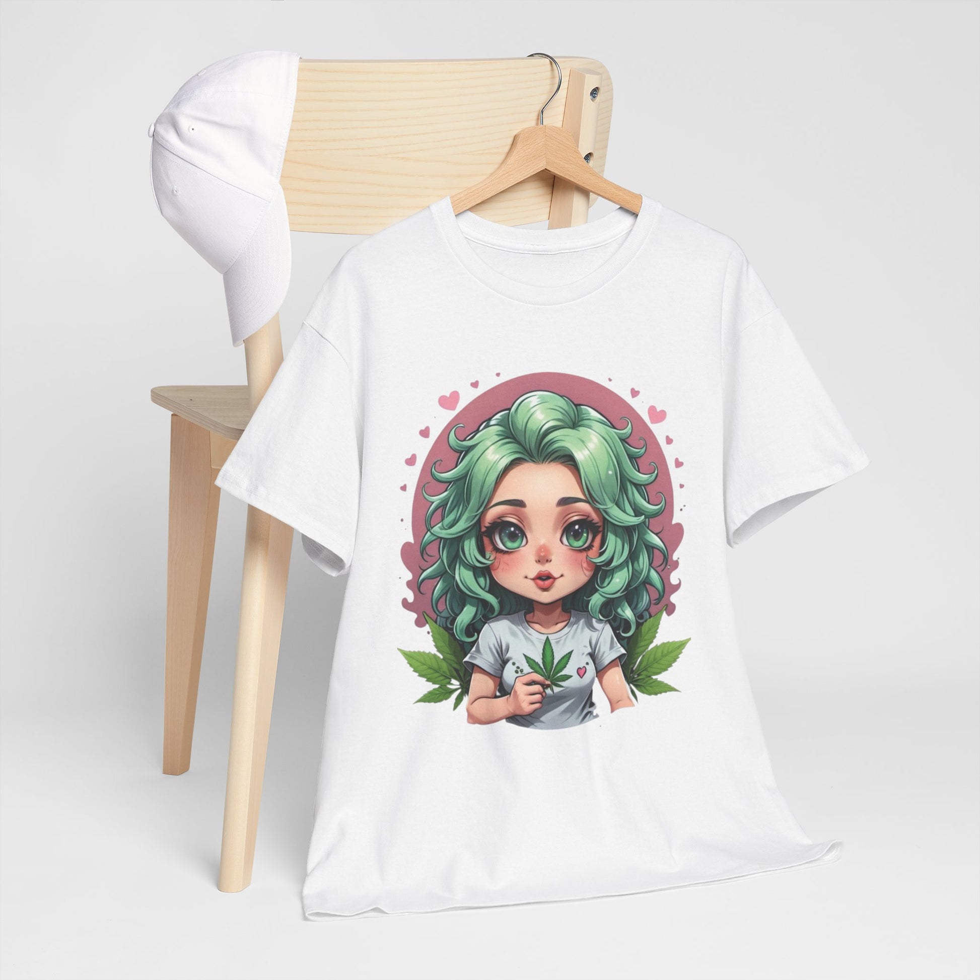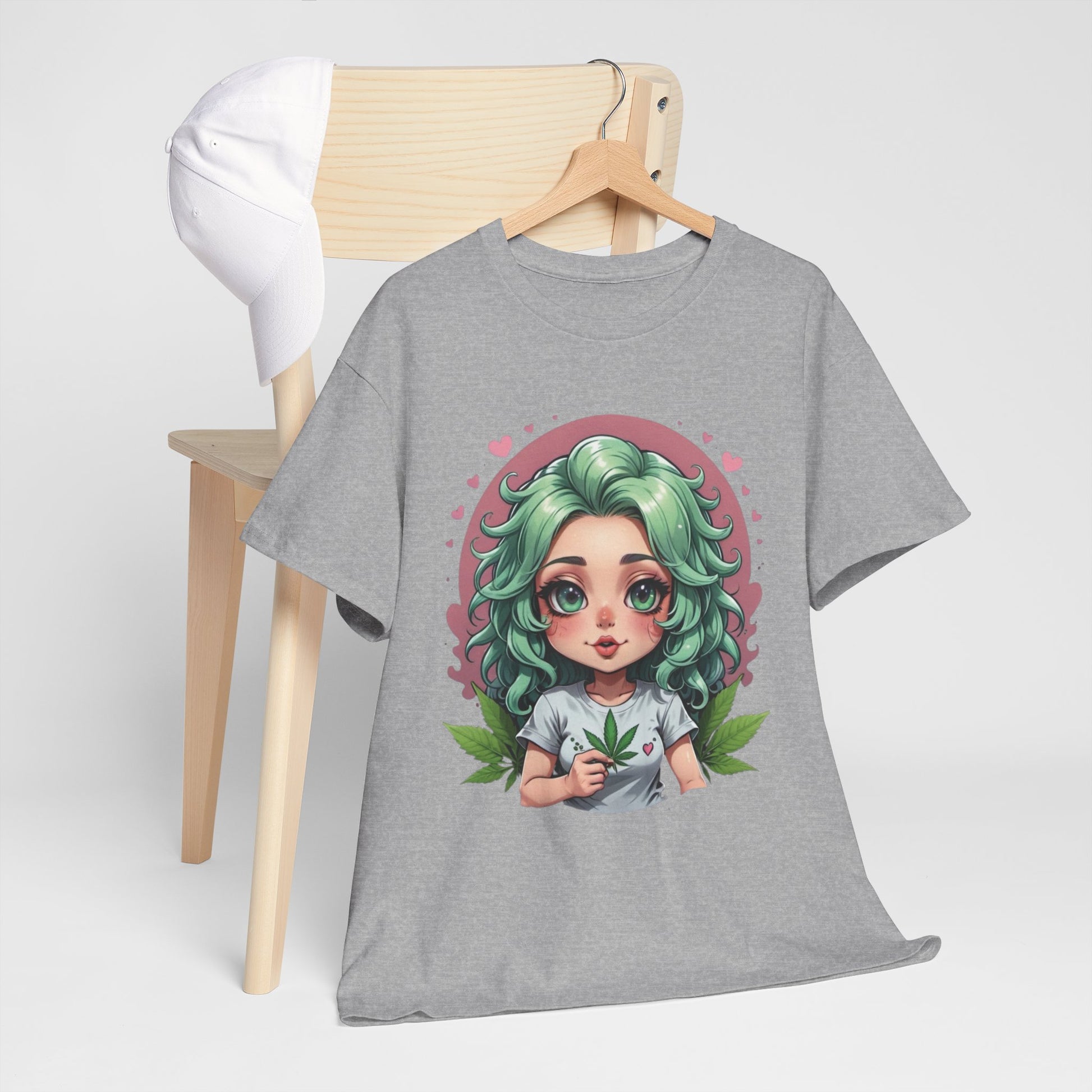 Soft, breathable, and printed with care — this classic cotton tee features a whimsical, anime-inspired portrait of a green-haired girl cradling a small plant. The illustration blends gentle pastels and bold linework to create a tender, nature-loving vibe. Wear it on slow mornings at the café, while tending houseplants, or layered under a jacket for an artsy, casual look that quietly says you care about growth and creativity. The crew neck and relaxed fit make it comfortable for everyday movement, while the clean print placement keeps the focus on the adorable design. This tee belongs in wardrobes that favor cozy creativity and small, meaningful moments.