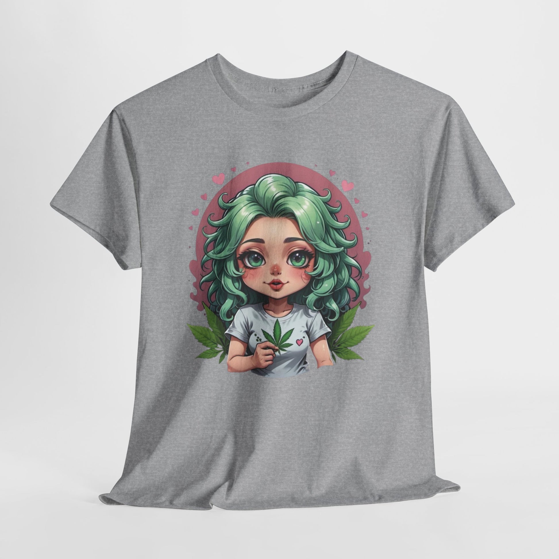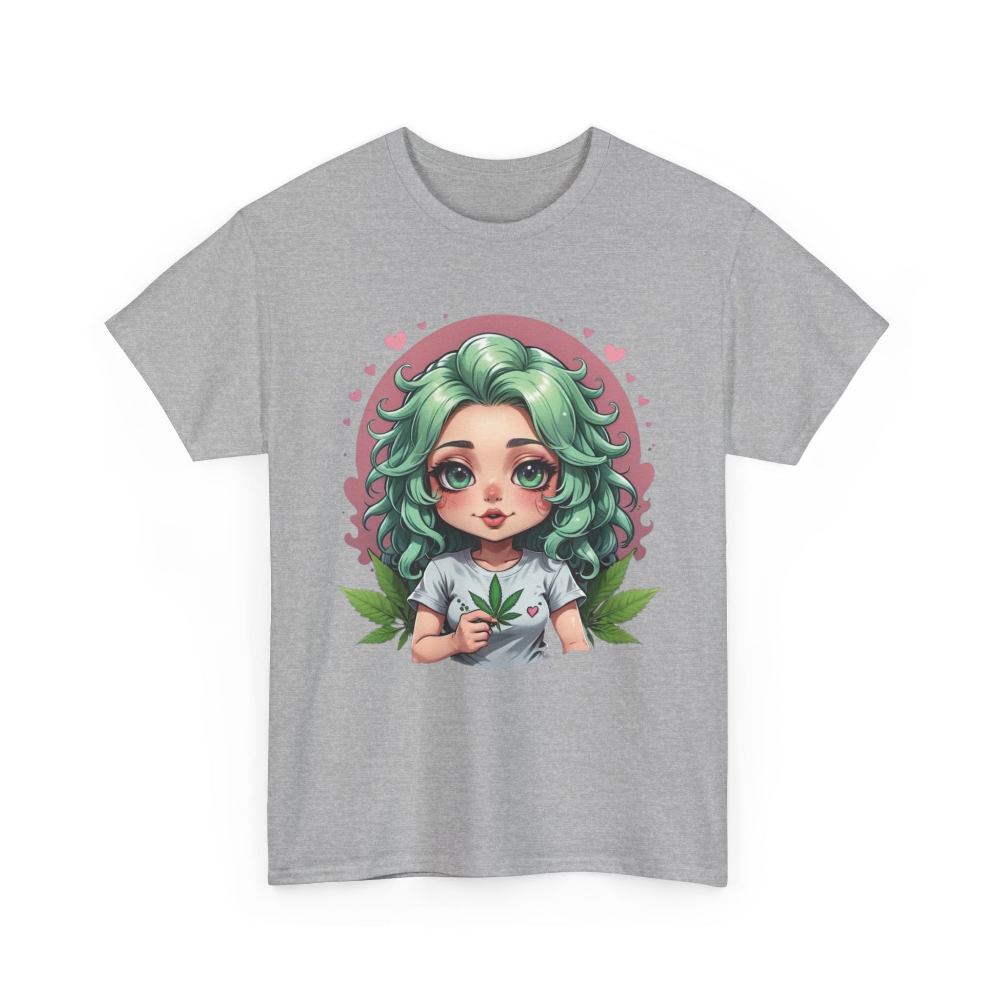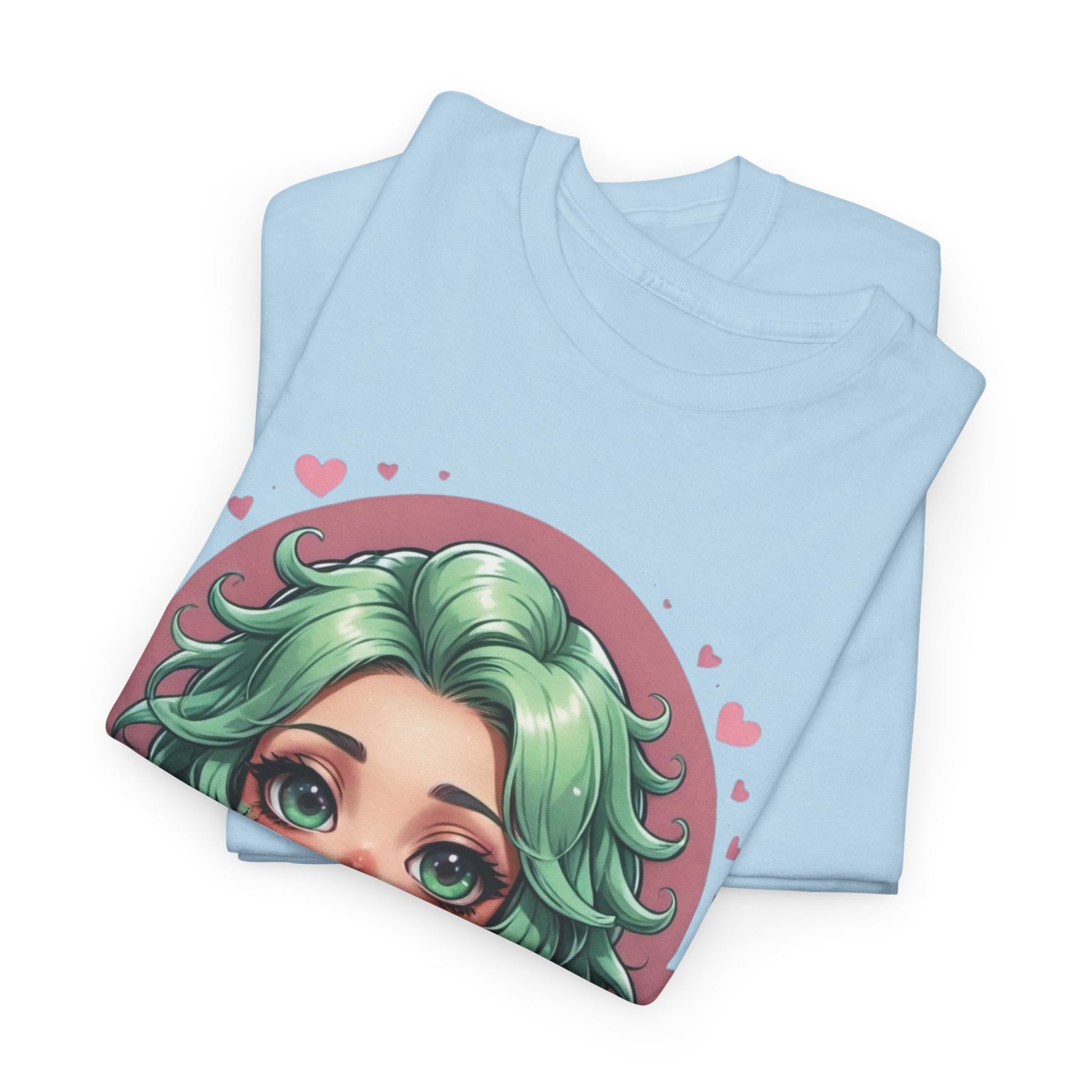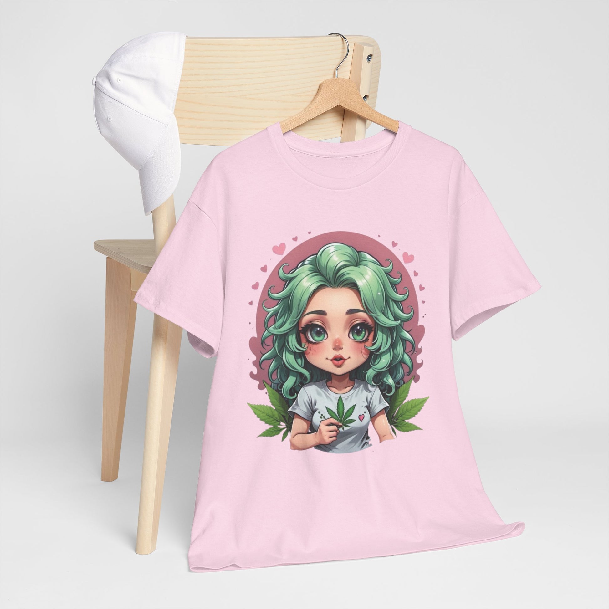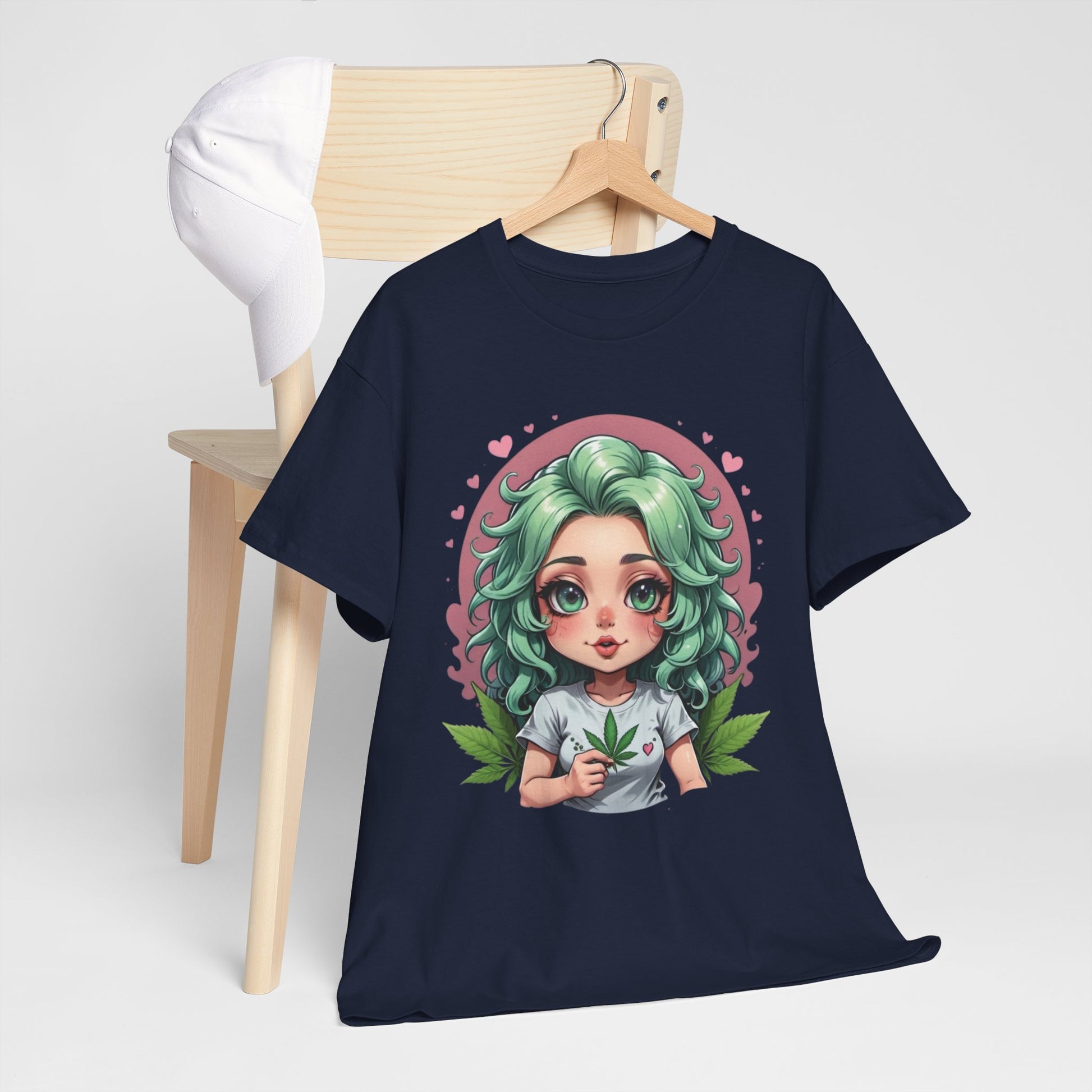 Soft, breathable, and printed with care — this classic cotton tee features a whimsical, anime-inspired portrait of a green-haired girl cradling a small plant. The illustration blends gentle pastels and bold linework to create a tender, nature-loving vibe. Wear it on slow mornings at the café, while tending houseplants, or layered under a jacket for an artsy, casual look that quietly says you care about growth and creativity. The crew neck and relaxed fit make it comfortable for everyday movement, while the clean print placement keeps the focus on the adorable design. This tee belongs in wardrobes that favor cozy creativity and small, meaningful moments.