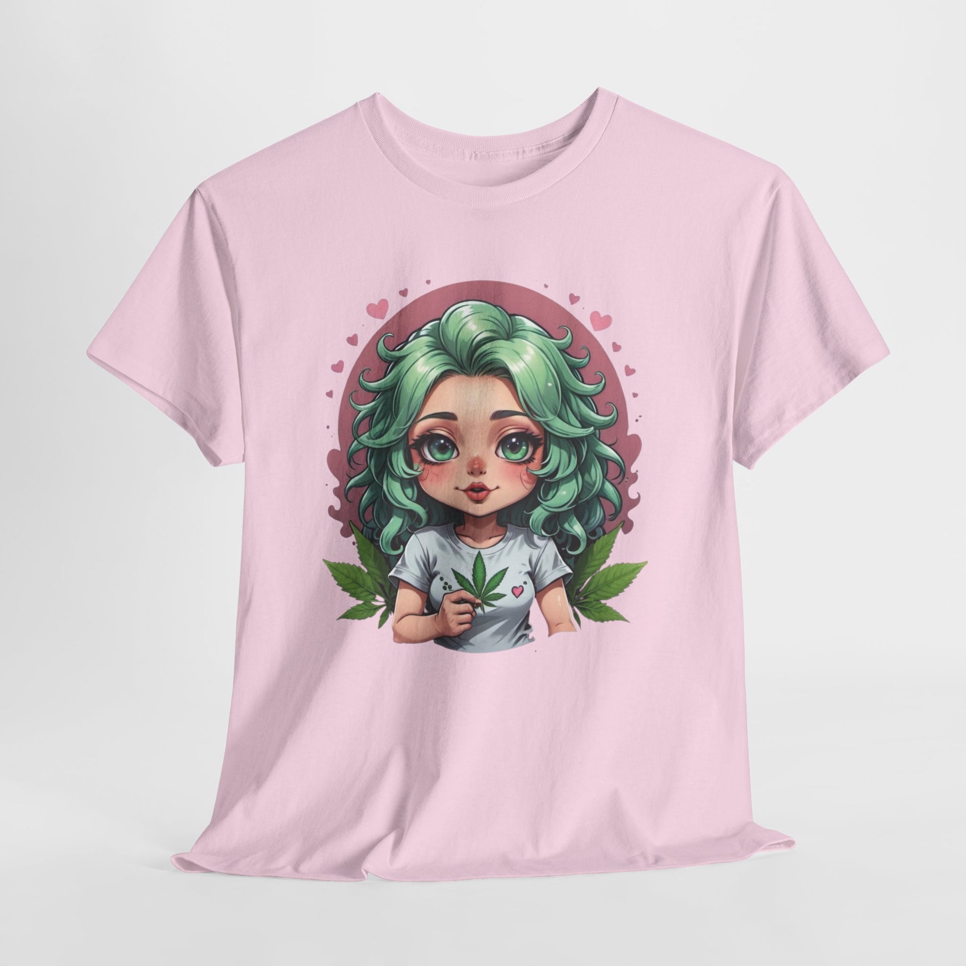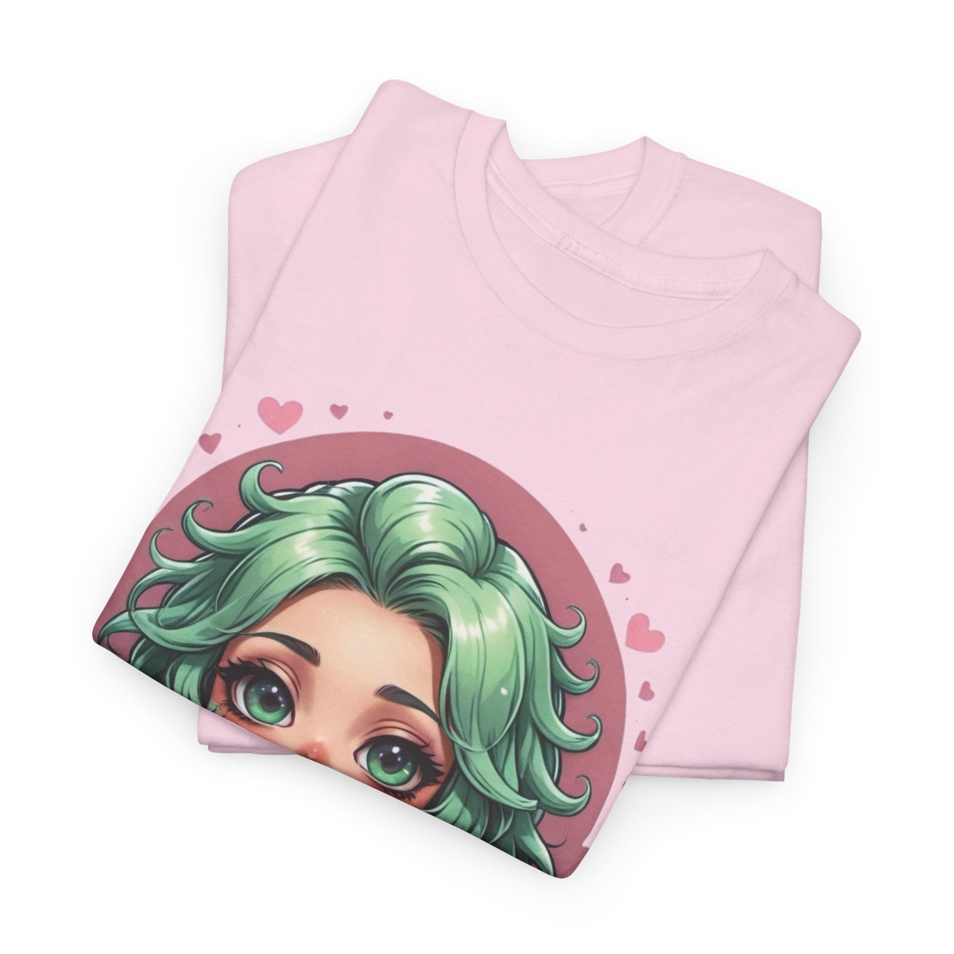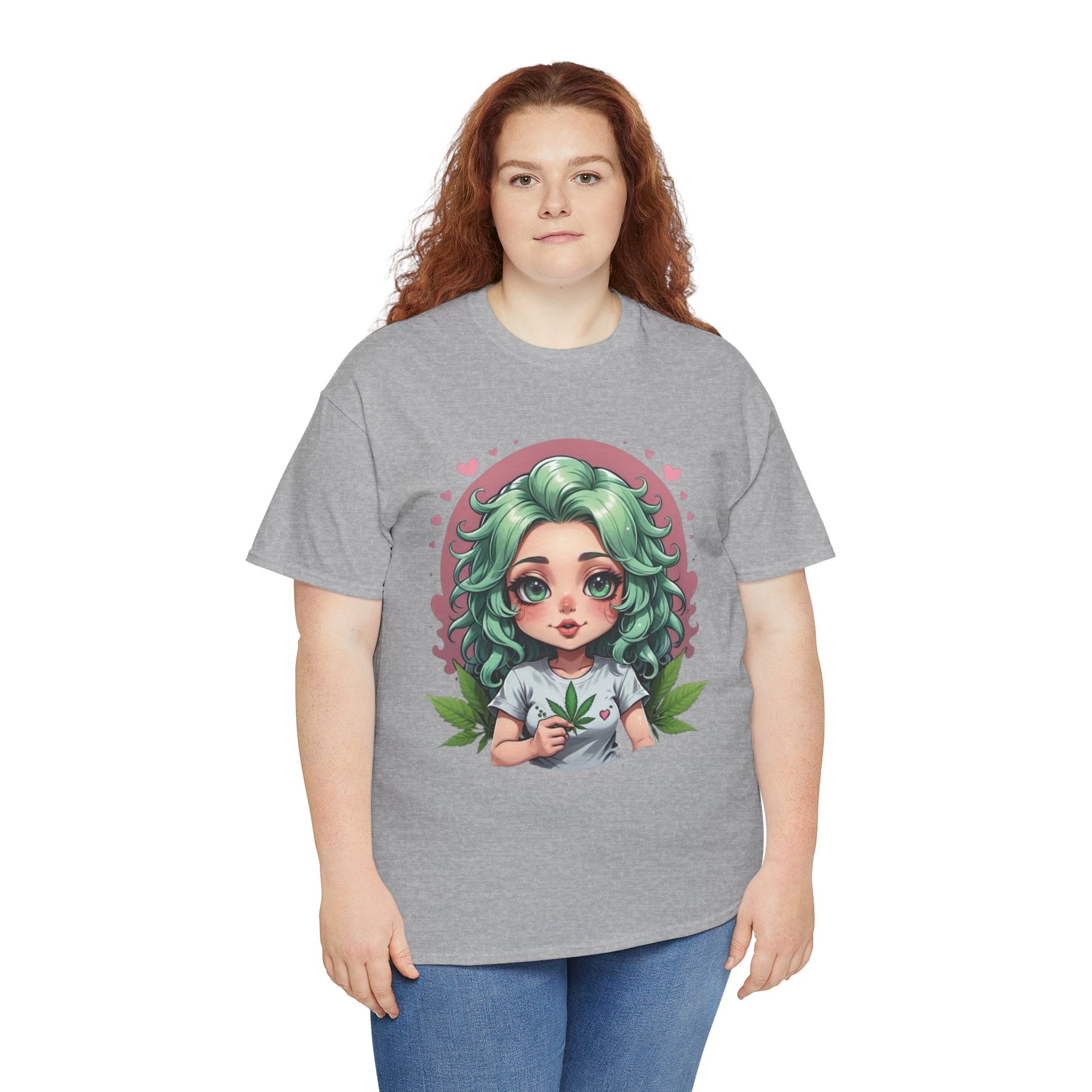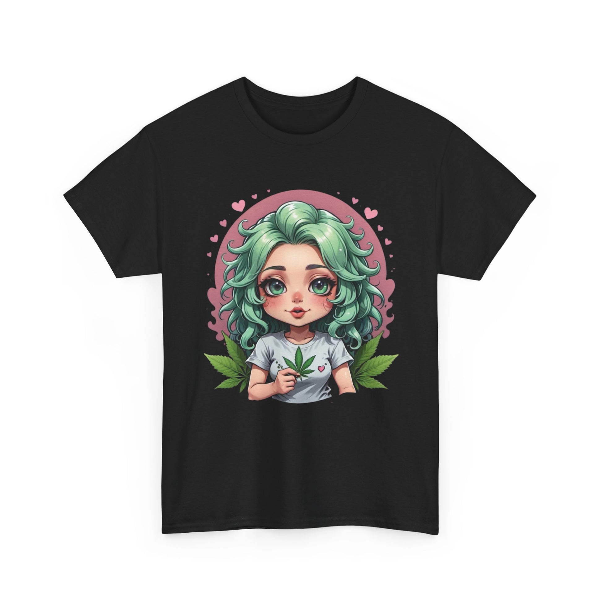 Soft, breathable, and printed with care — this classic cotton tee features a whimsical, anime-inspired portrait of a green-haired girl cradling a small plant. The illustration blends gentle pastels and bold linework to create a tender, nature-loving vibe. Wear it on slow mornings at the café, while tending houseplants, or layered under a jacket for an artsy, casual look that quietly says you care about growth and creativity. The crew neck and relaxed fit make it comfortable for everyday movement, while the clean print placement keeps the focus on the adorable design. This tee belongs in wardrobes that favor cozy creativity and small, meaningful moments.