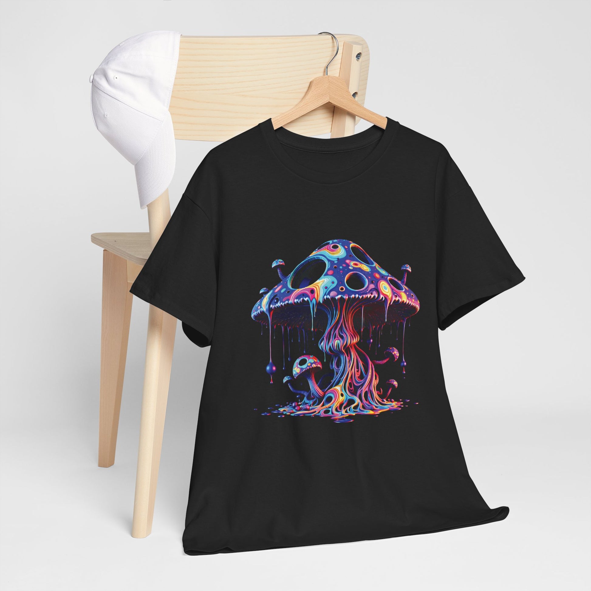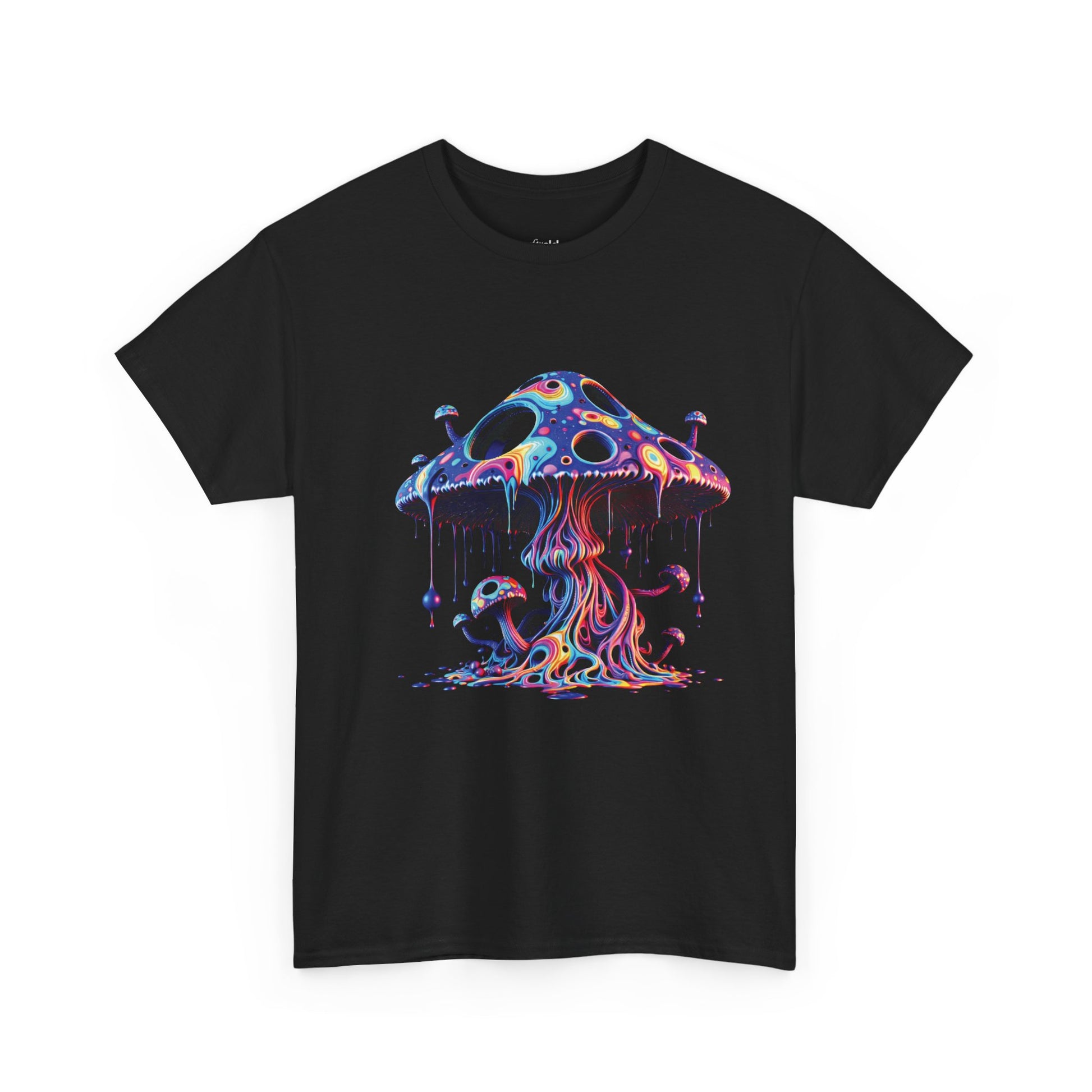 Psychedelic Neon Mushroom T-Shirt — Trippy Dripping Fungi Graphic Tee